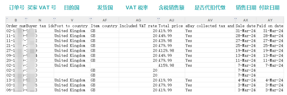 去掉所有筛选,AY列付款日期为当前申报期内的日期,AV列是否代扣代缴=“NO”和空,N列买家VAT号为空,AF列发货国=“PL”, V列勾选没有税号的欧盟国家(除客户提供的税号,还可以通过:亚马逊销售报告BT列有数据代表对应国家有税号),求和AU列含税销售额(求和前请先确认AU列是否有不同币种,如有需要按汇率换算成申报国币种之后再合并求和)