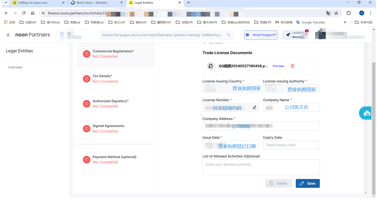 7、点击【Legal Entities】>【Commercial Registration*】,截图②(若找不到该页面可不提供)