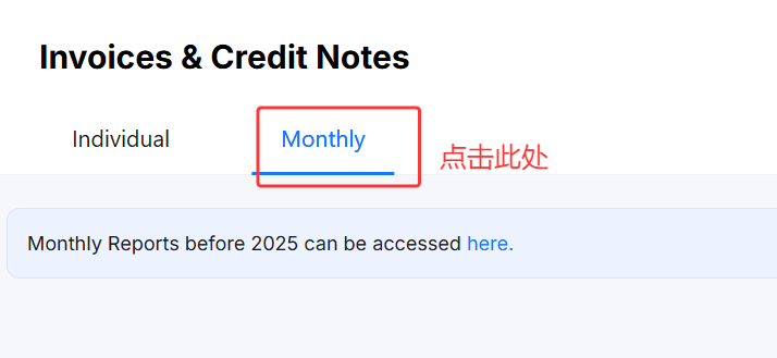 4、点击【Monthly】>选择需要下载报告的日期区间>下载报表