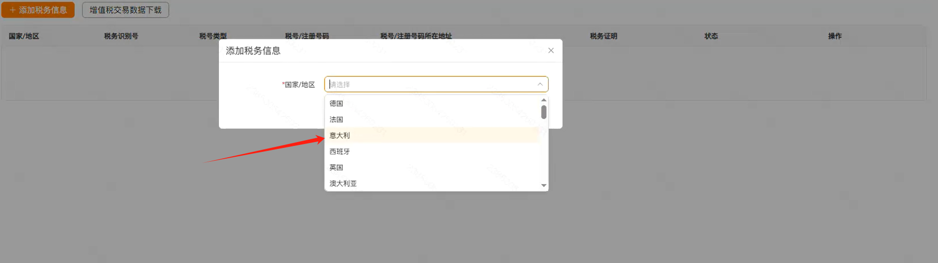2、国家/地区选择【意大利】