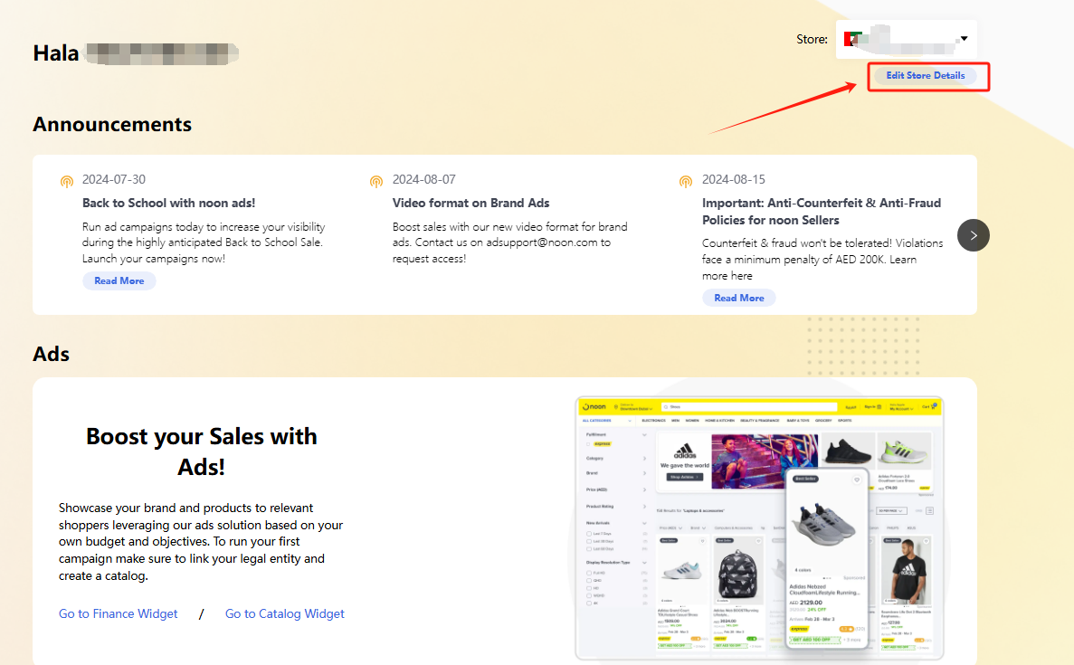 3、点击【Edit Store Details】,然后点击【Link legal entity to your store AE】