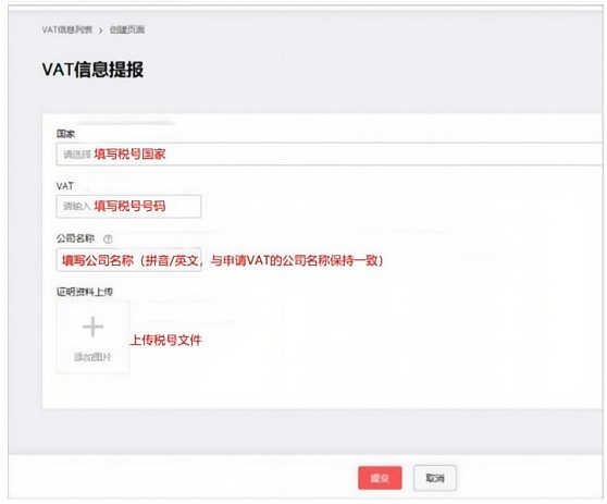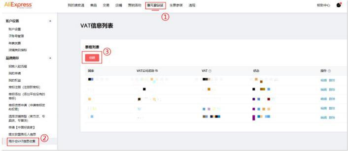 1、登录 AliExpress 卖家后台卖家后台账号点击:【账号及认证】>【海外仓 VAT 信息收集】>【创建】2、填写【税号】和【公司名称】,上传税号文件之后点击【提交】,提交之后,平台审核时效3- 5 个工作日左右